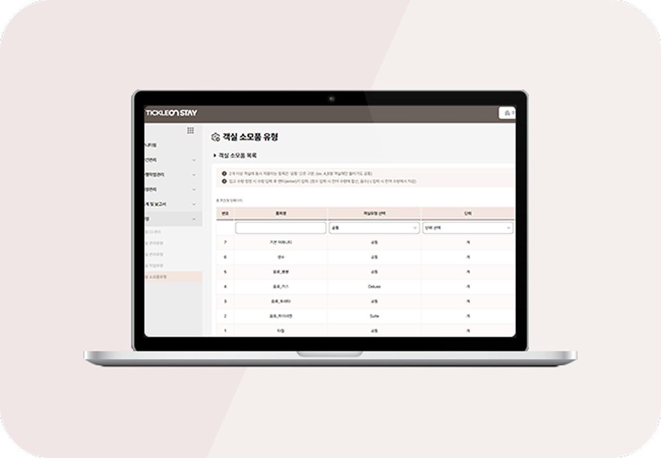 객실 전반 체계적 유지 관리 - 린넨 및 비품관리