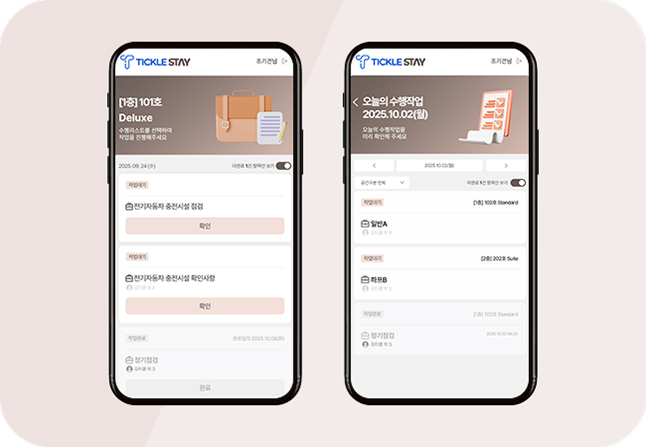 표준화된 청소프로세스를 제공하는 티클온스테이가 답입니다.